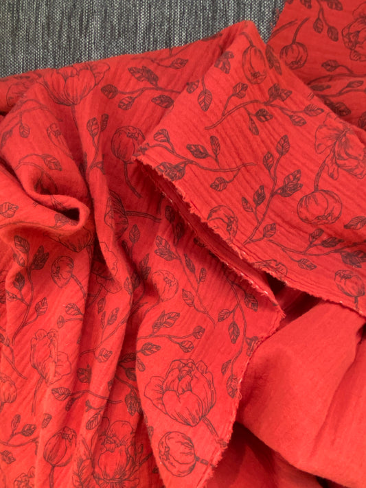 Überwurf | Plaid aus Musselin *Pfingstrosen auf rost