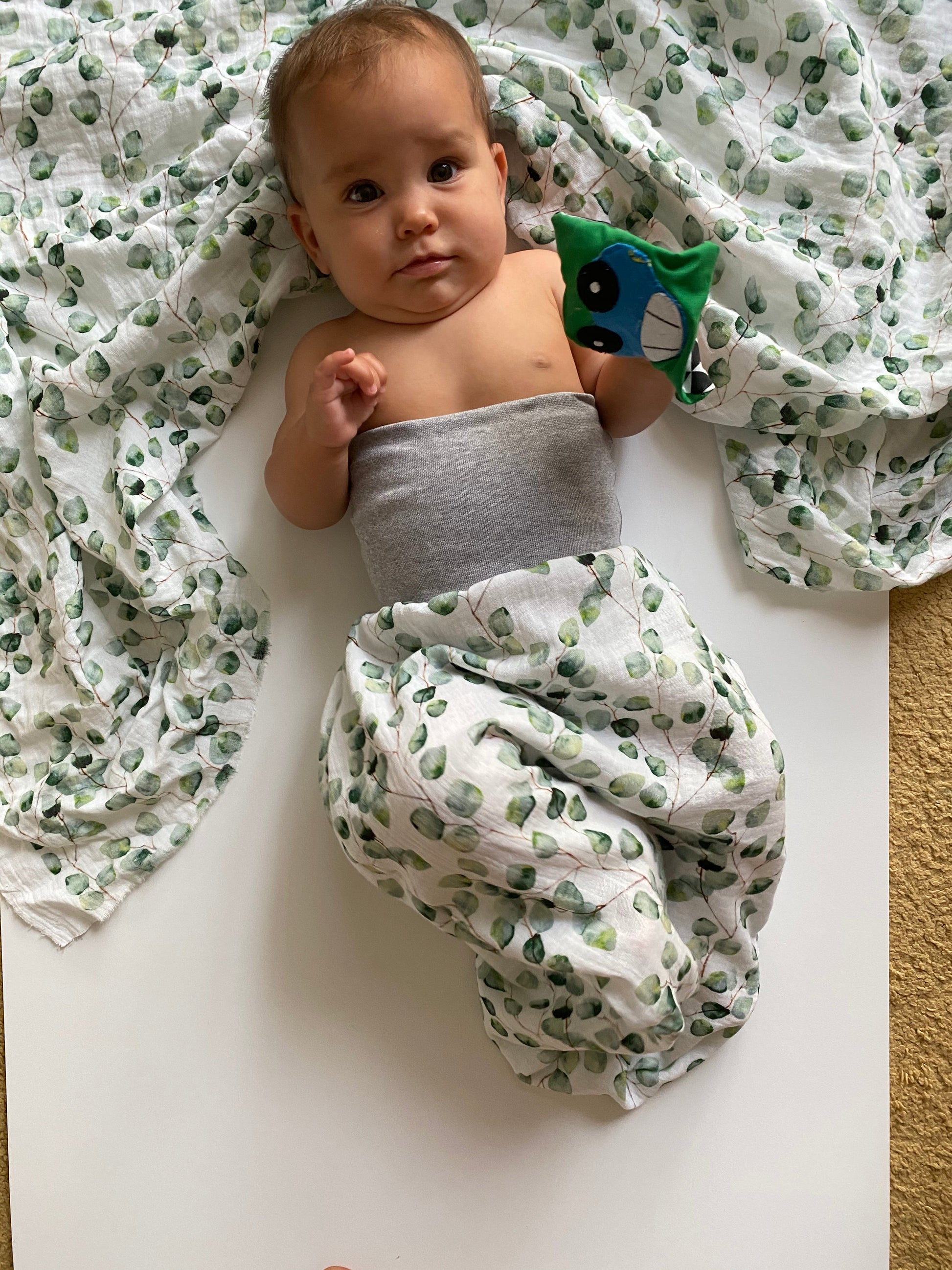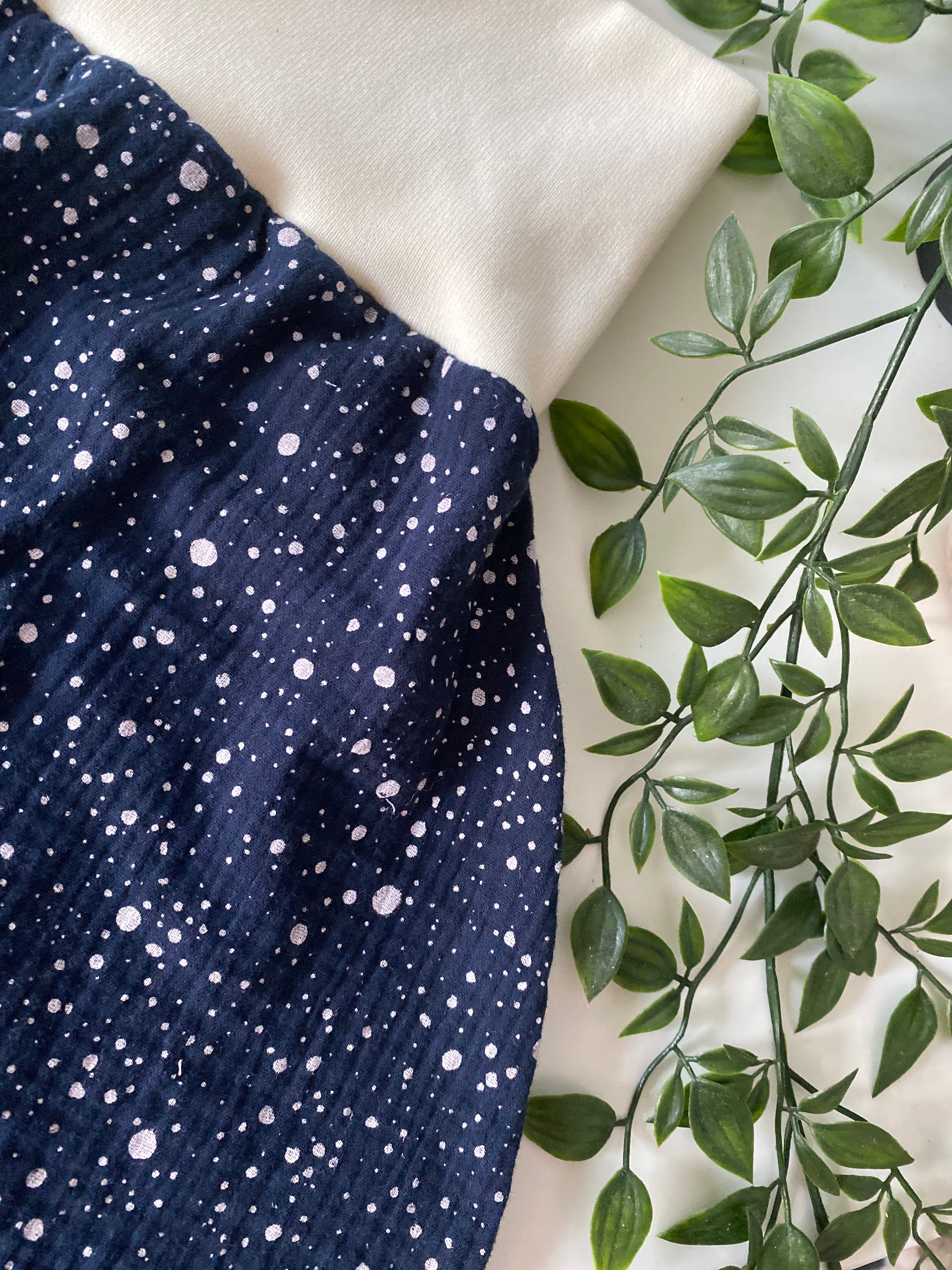 - innen Jersey: Musselin außen, Jersey innen der Schlafsack ist ein wenig wärmer, perfekt für die Übergangsmonate und „normale“ Temperaturen.