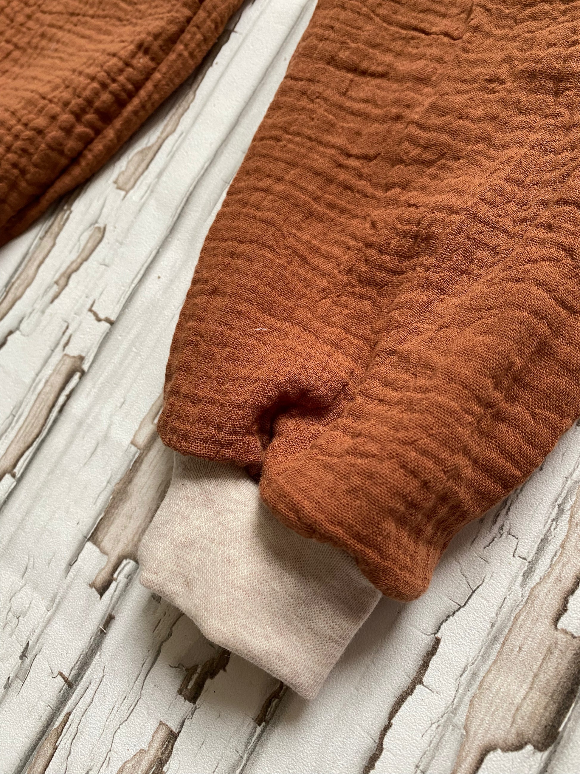 Lange Hose aus dünnem, leichtem Musselin-Baumwollstoff.